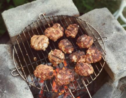 Naděláme malé a ploché karbanátky a pomalu grilujeme - nejlépe na dřevěném uhlí.
